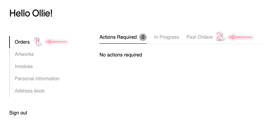 Once logged in, go to your account name or icon in the top right-hand corner. Select ‘Orders’ from the left-hand menu and then click on the ‘Past Orders’ tab to view all previous purchases.