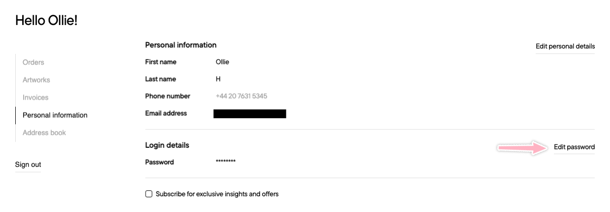 Click the "Edit Password" button and follow the prompts to set a new password. Ensure it meets the security criteria: at least 8 characters, 1 uppercase letter, and a special character.